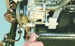 5. Ключом «на 13» ослабьте затяжку гайки переднего нижнего крепления насоса.