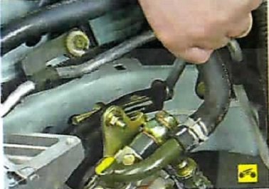 1. Ослабьте затяжку гайки нижнего крепления насоса гидроусилителя рулевого управления.