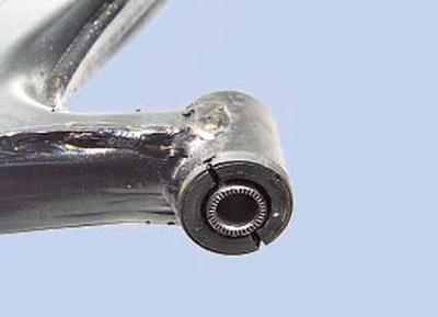 Поскольку оригинальные рычаги передней подвески поставляют в запчасти в сборе с сайлентблоком и резинометаллическим шарниром, дальнейшая разборка рычага не имеет смысла.