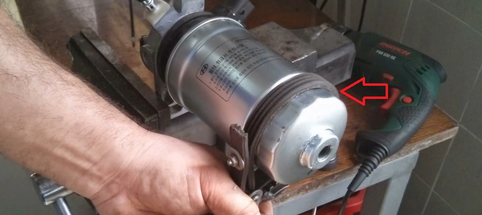 9. Зажмите в тисках подогреватель топливного фильтра и специальным съемником открутите топливный фильтр.