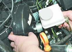 9. Если полностью снимали главный тормозной цилиндр, залейте тормозную жидкость и удалите воздух из системы