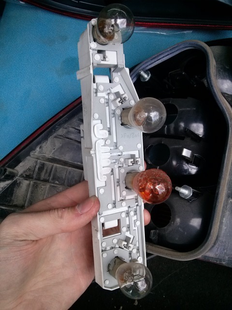 Замена труда не составляет: снимаем кусок обшивки, отключаем плату, откручиваем три гайки и снимаем фонарь.