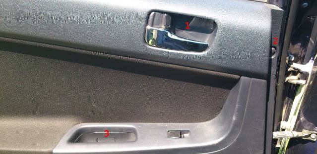 Снятие и установка обивки передней двери Mitsubishi Lancer X